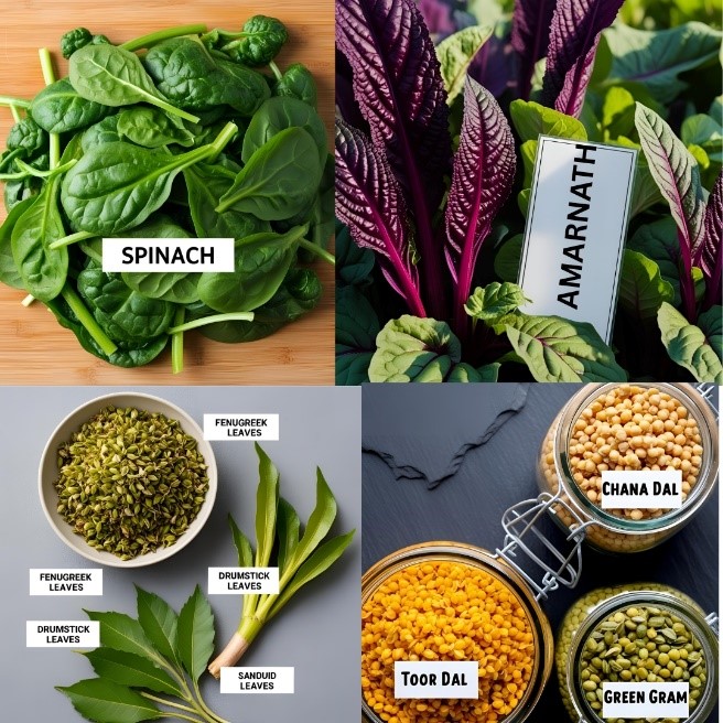 ✔️ Greens: Soppu like Spinach (Palak), Drumstick Leaves (Nugge soppu), Amaranth (Harive soppu), Fenugreek Leaves (Menthya soppu) – Perfect for curries or dals!